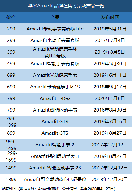 Amazfit 2019年新品發(fā)布數(shù)量多、頻率高,在保持品牌曝光度、快速覆蓋300元~2000元全部價格區(qū)間的同時,也不可避免地存在相近價位產(chǎn)品區(qū)分不夠明顯、新老產(chǎn)品內(nèi)耗的問題。