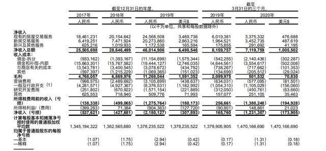 然而營收的增加所帶來的卻是連續三年時間的虧損,財報中2017年到2019年,貝殼營收分別為255億元、286億元、460億元,這個數值在2020Q1有所減少,為71億元。