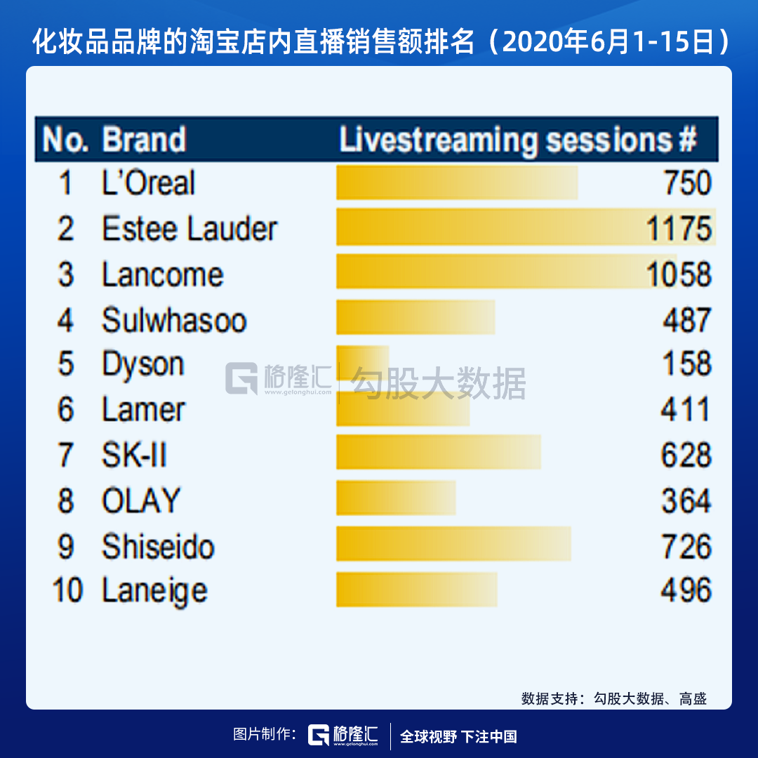 而且,與國產品牌相比,盡管國際大牌們的線上渠道占比較低,但它們也在加速線上布局,同時開始在低線城市開設專營店。今年6月以來,歐萊雅、雅詩蘭黛等國際品牌的淘寶直播場次排名已經沖到前列。無論在累計直播時長還是直播轉化率上,國產品牌和國際大牌之間并沒有明顯差距。